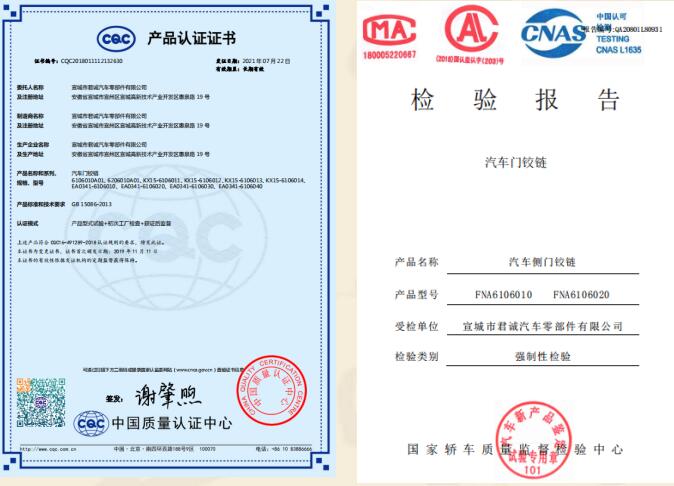 宣城市君誠汽車零部件有限公司是專業(yè)生產各類汽車鉸鏈及限位器的民營企業(yè),總投資3000余萬元,位于宣城高新技術產業(yè)開發(fā)區(qū),緊鄰宣廣、宣蕪高速公路,地理位置優(yōu)越,交通便捷。是“國家高新技術企業(yè)、知識產權貫標企業(yè)、安徽省商標示范企業(yè)、安徽省科技型企業(yè)”,已獲得國家發(fā)明專利18項,實用新型發(fā)明專利4項。主要從事各類汽車門鉸鏈及限位器的設計、研發(fā)、生產、和銷售,具有專業(yè)的合作團隊。自2015年正式生產至今,已形成一整套完整的生產、質量管理體系。并已通過國家強制性產品認證“3C”體系認證及IATF16949國際質量體系認證。在生產設備上,公司擁... 【查看詳細】